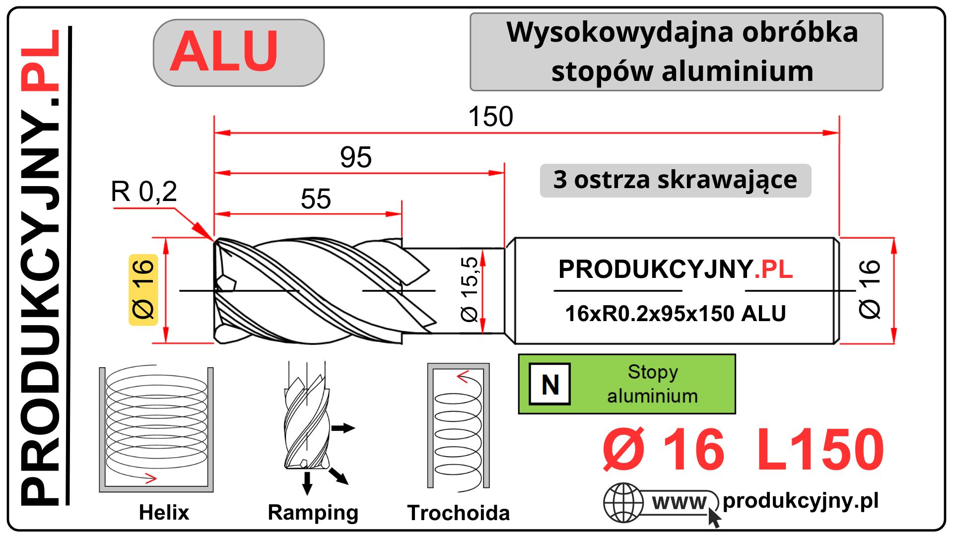 Średnica freza: 16 R0,2 Long