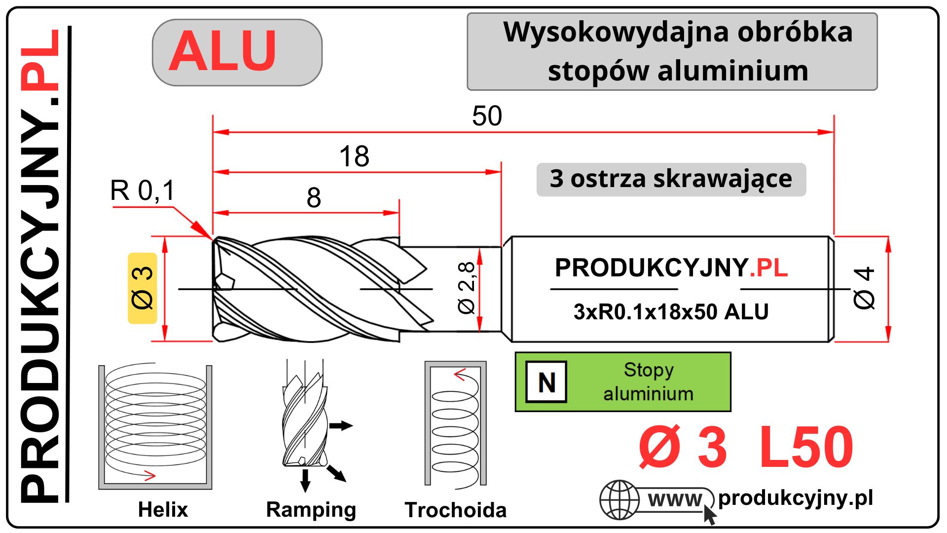 Średnica freza: 3 R0,1
