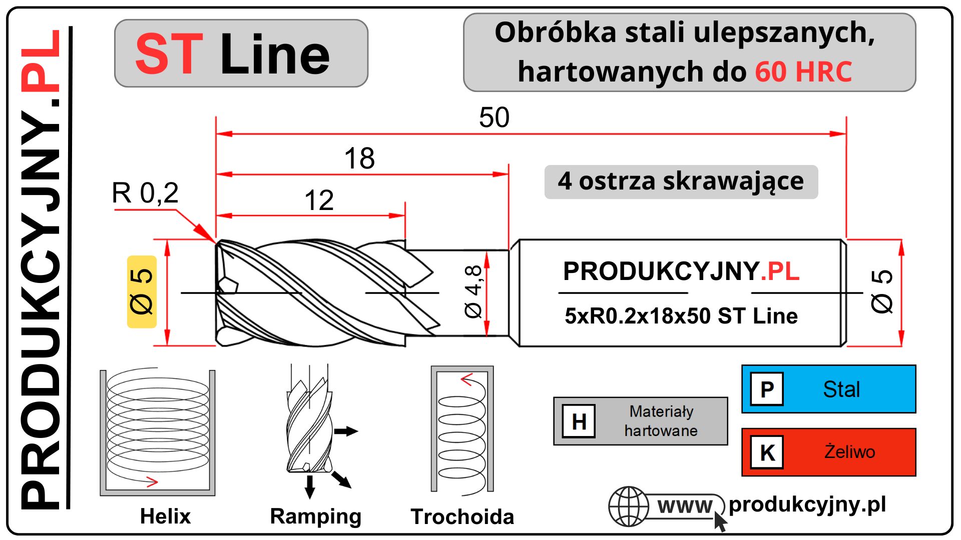 Narzędzia z serii ST LINE wykonane są z ultra drobnoziarnistego węglika spiekanego. Geometria frezów została zoptymalizowana pod kątem wysokowydajnej obróbki stali ulepszanych do 60 HRC. Pokrycie Multi TiSiN to wielowarstwowa powłoka na bazie krzemu.